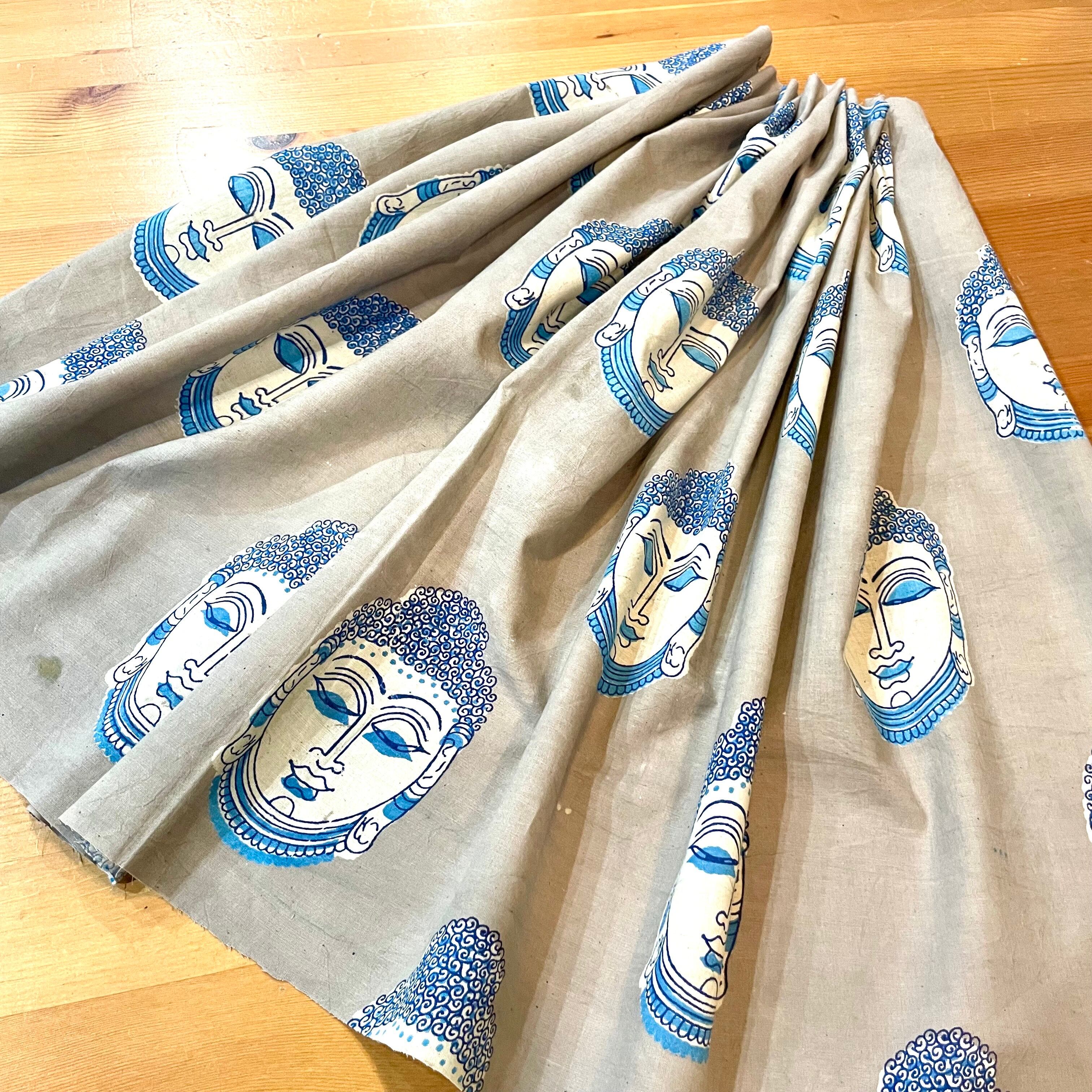 BP-025 インド更紗 ブロックプリント グレー ブルー 仏像 100cm幅 x 50cm 【商用利用OK】