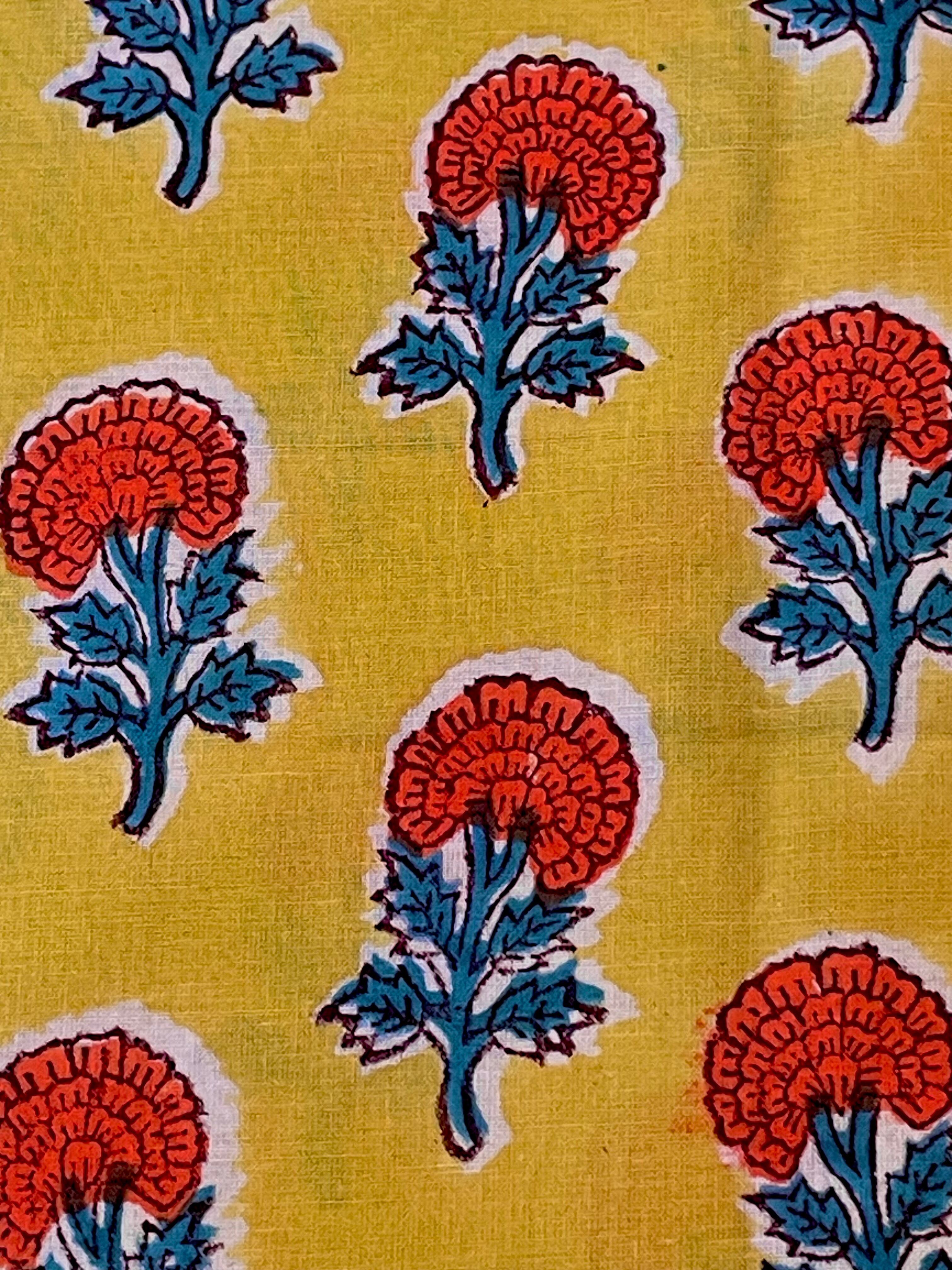BP-008 インド更紗 ブロックプリント オレンジ イエロー 花柄 100cm x 50cm 【商用利用OK】
