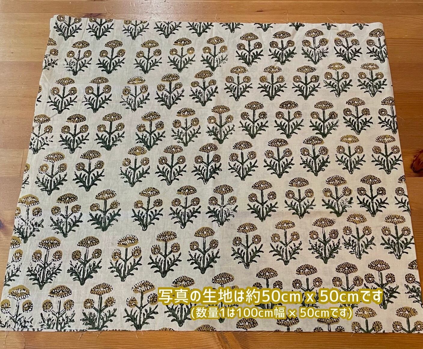 BP-006 インド更紗 ブロックプリント 黄 ベージュ 花柄 100cm x 50cm 【商用利用OK】